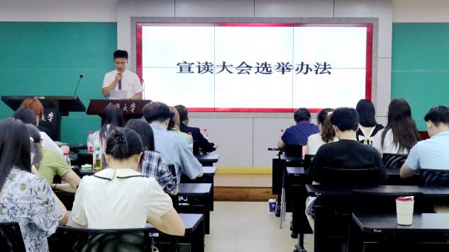随后,大会进行第七届研究生委员会主席团和研究生委员会委员选举,主持人宣读大会选举办法,并对候选人进行简要介绍。