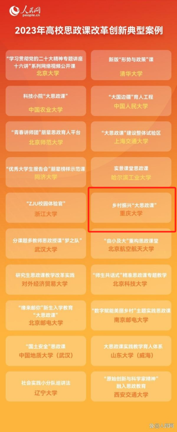 《2023年高校思政课改革创新情况分析报告》分析了本年度高校思政课创新呈现的五个特点,并根据各高校思政课程的社会反响、信息传播量、主流媒体关注度、舆论反馈情况等维度,在全国征集推介选出20个优秀思政课程案例,以期为各高校思政课改革创新提供借鉴启示。我校探花视频