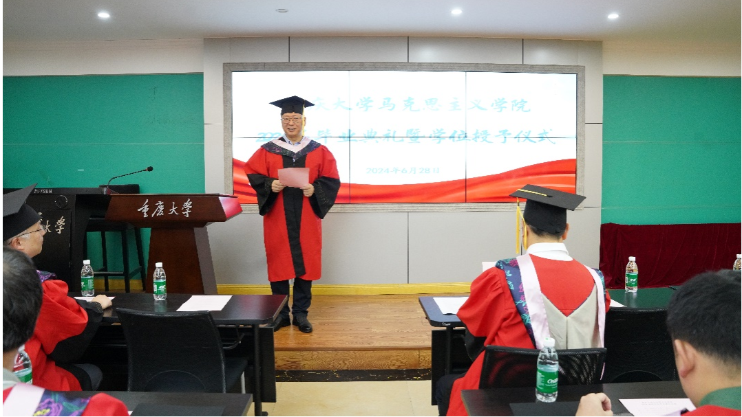 在408室举行2024届研究生毕业典礼,学院领导班子、研究生导师及2024届全体毕业研究生参加典礼,典礼由吕进副院长主持。