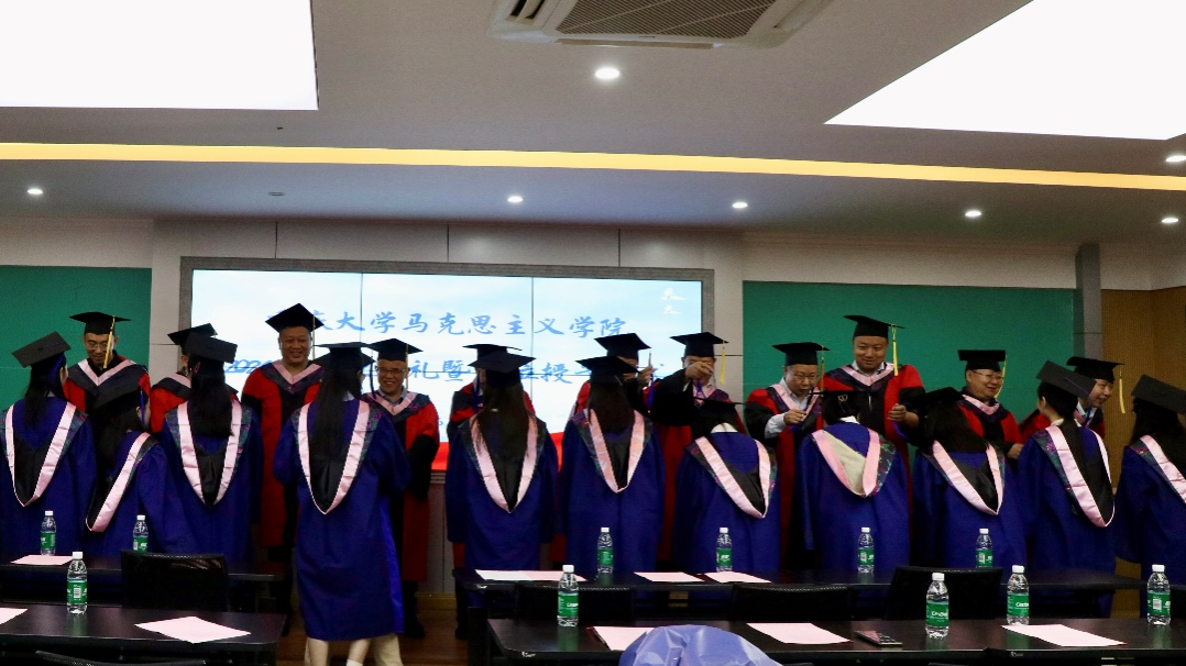 冯颜利院长宣读授予博士学位、硕士学位的决定,祝贺2024届马院学子顺利毕业。与会领导和导师代表为2024届博士毕业生和硕士毕业生授位。