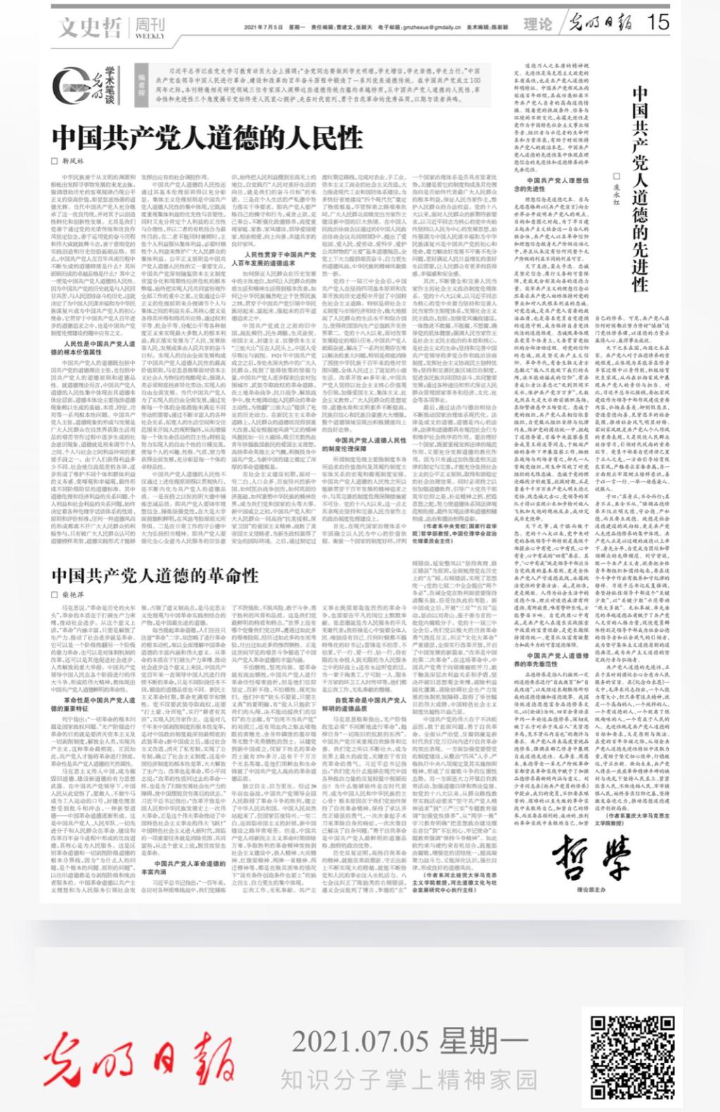 2021年7月5日,《光明日报》理论版刊发探花视频