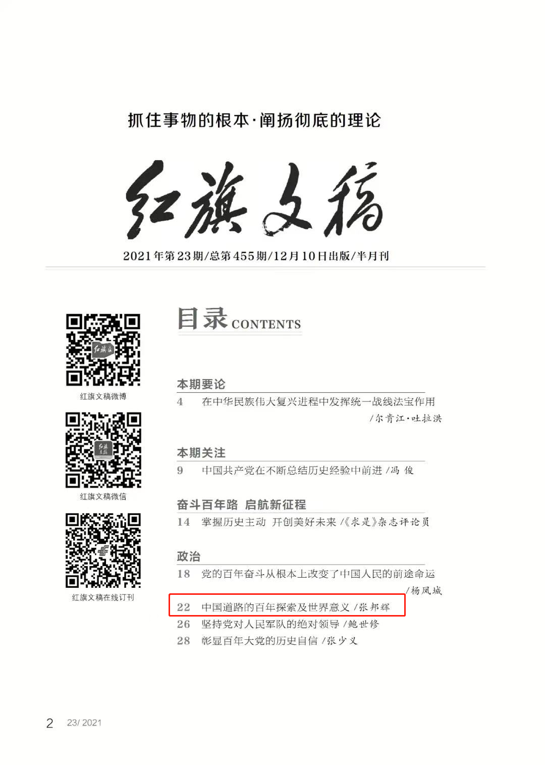 在2021年12月10日出版的《红旗文稿》中,刊发探花视频