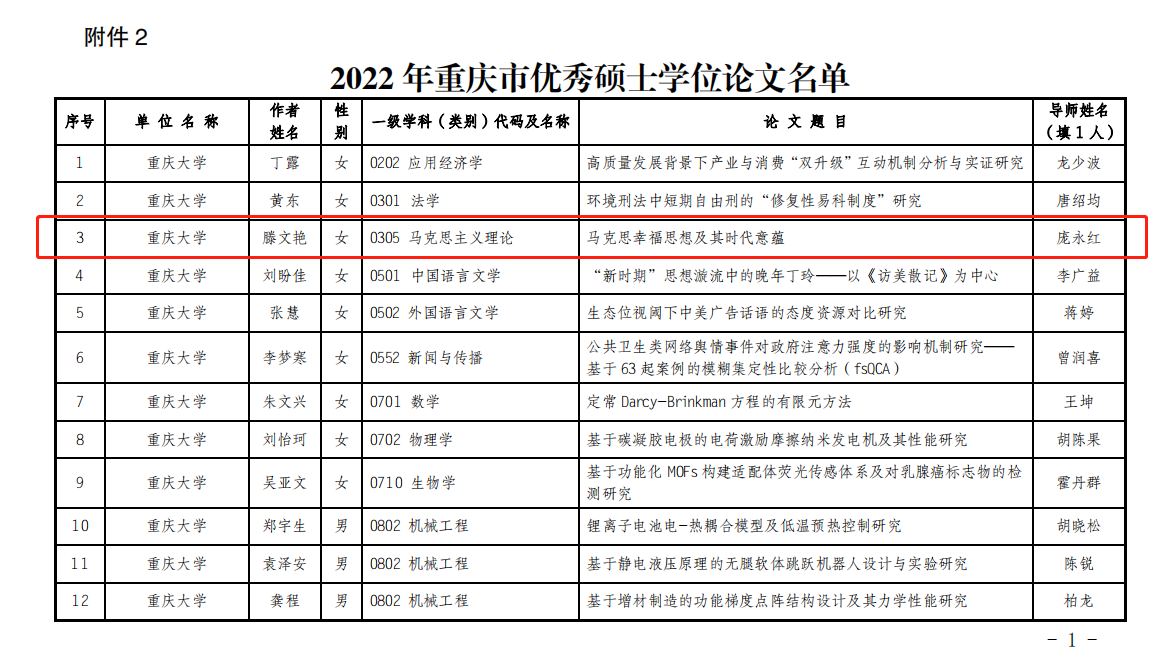 探花视频 滕文艳毕业论文获评重庆市优秀硕士学位论文