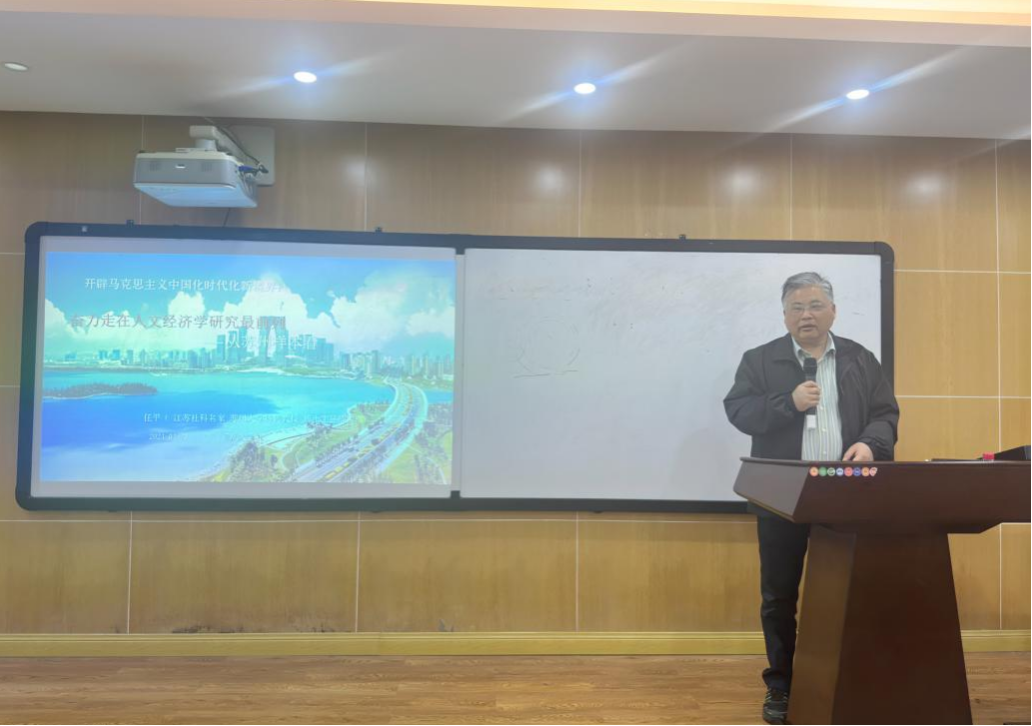 在人文经济学的方法论上,任平指出要突破西方经济学逐利本性和狭隘知识藩篱,站在时代化唯物史观高度加以理解和把握。随后,他介绍了人文经济学的基本内涵,即人文经济学是揭示人文经济的本质内涵、历史成因、基本特色、主要功能和发展规律的自主知识体系,是知识交叉的中国特色政治经济学。人文经济学主张在经济发展忠彰显“以人民为中心”的人文价值引领,通过传统与现代相结合、经济文化化和文化经济化双向交融推动经济高质量发展。他还介绍了人文经济学的苏州样本,指出人文经济是苏州样本的鲜明特点和主要风范。