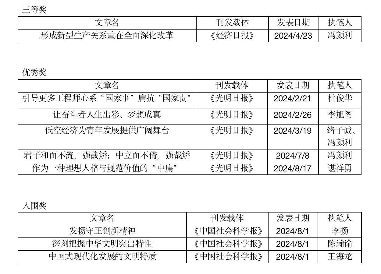 近日,中共重庆市委宣传部印发《关于表扬优秀理论文章的通报》,对2023年9月20日至2024年10月14日期间发表的82篇优秀理论文章予以通报表扬。冯颜利教授等7位马院教师发表于《光明日报》《经济日报》等的9篇理论文章入选,其中三等奖1篇、优秀奖5篇、入围奖3篇。