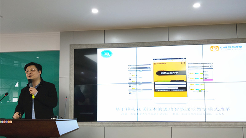 接下来沈教授向在场师生介绍了思政课教学与新媒体、新技术结合而取得巨大成效的案例。他指出共享单车和北京卫视“跨界歌王”的成功案例给思政课的教学带来的重要启示和创新思路。他分享了他们团队的成功经验,他们是如何站在学生的角度,设计学习软件来提高学生的到课率、抬头率和参与率,从而真正做到思政课全员参与、全员互动、全员收获。